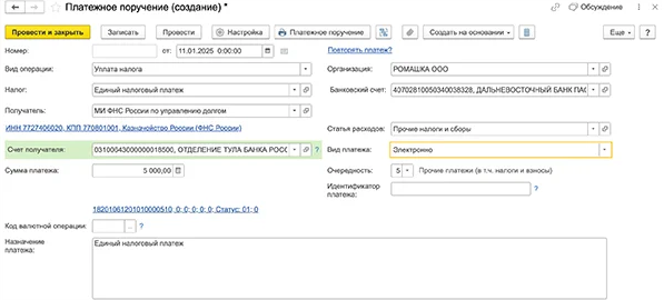 Вопрос: Как мне в 1С сформировать этот единый платеж на ЕНС? Программа сама посчитает, сколько нужно перевести?