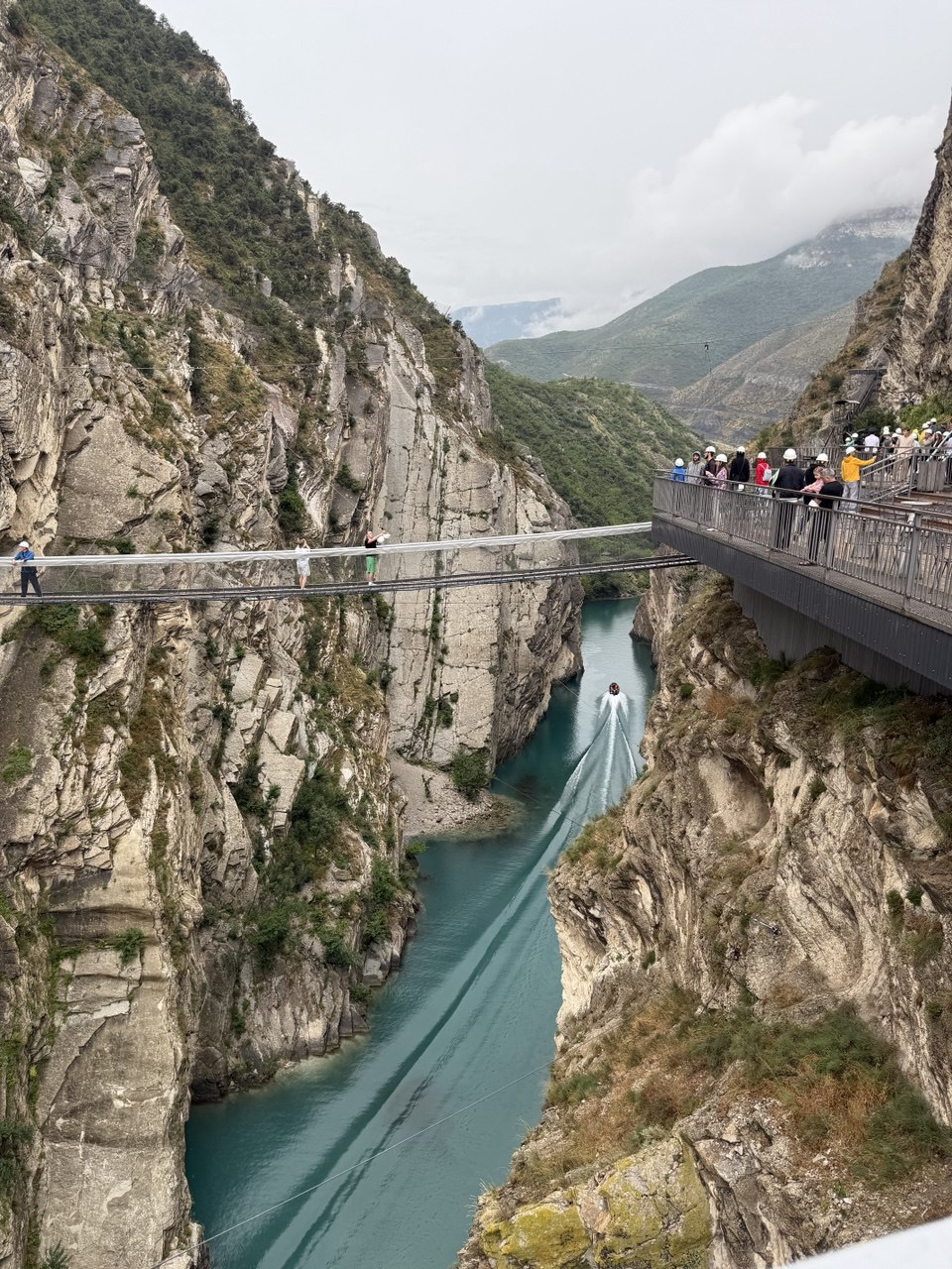 Уже с первых часов путешествие начало раскрывать перед нами свою душу, с каждым поворотом серпантина показывая всё новые и новые грани своего характера — то суровые и величественные, то тихие и задумчивые.Первым испытанием и откровением стал Сулакский каньон — это не пейзаж, это vertigo. Ощущение, будто землю выдернули из-под ног, и ты паришь над бездной, а где-то внизу, в плену у скал, лениво вьется серебряная нить реки. Воздух звенит абсолютной тишиной, прерываемой только биением собственного сердца. Здесь понимаешь всю ничтожность и одновременно величие человеческого бытия.