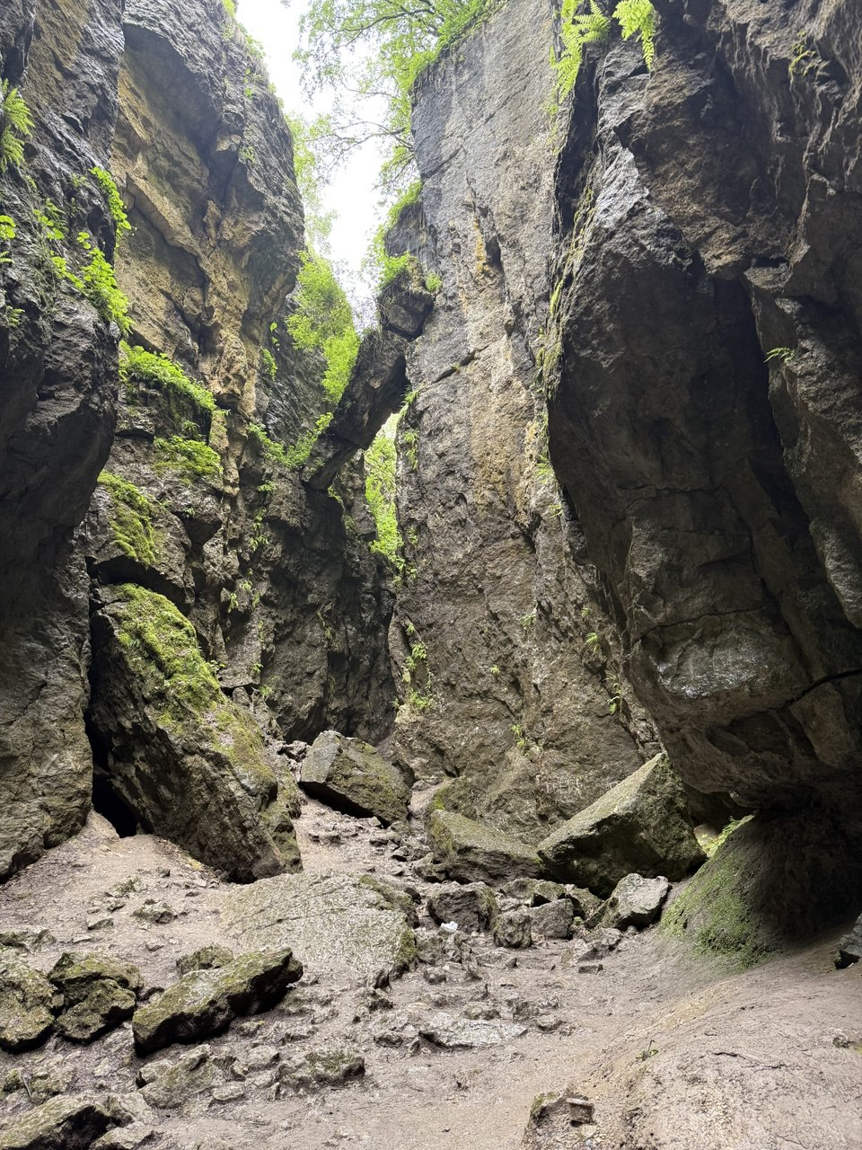 Затем нас поглотила Карадахская теснина — это настоящий портал. С первого же шага внутрь смыкается прохладная, влажная темень, и внешний мир исчезает. Сверху лишь тонкая полоска неба, каменные стены дышат древностью, а под ногами шуршит ручей, упорно точащий свой путь сквозь камень. Она не просто поглощает — она проводит через себя, очищая и обновляя. Мы вошли одной командой, а вышли немного другими.